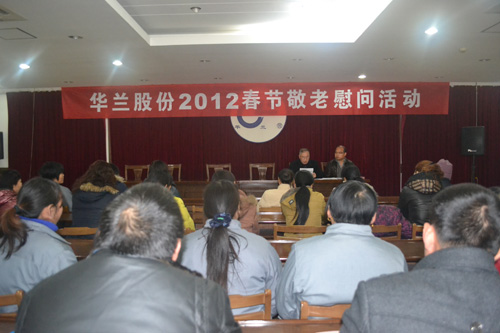 2012春節將至,為繼承和發揚華蘭一貫的敬老愛老傳統美德,將公司的《善待員工普惠制》落到實處,1月16日下午1時,華蘭股份2012新春敬老慰問活動在生產部二樓培訓室隆重舉行,活動由董事長助理韓曉偉主持,總經理華一敏先生,華蘭員工及員工家中年齡超過75周歲的老人參加了本次活動。