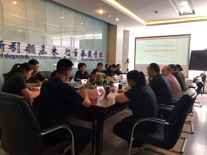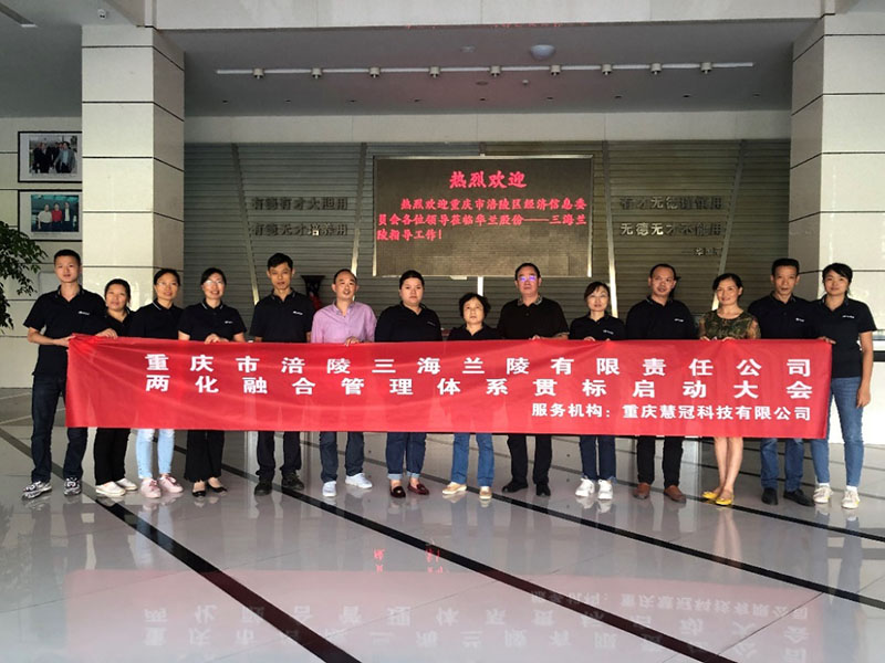 2019年9月29日,重慶市涪陵三海蘭陵有限責任公司(以下簡稱“三海蘭陵”)兩化融合管理體系貫標啟動會在三海蘭陵公司會議室隆重召開,涪陵區經信委陳學權科長、三海蘭陵中高層干部及部門業務骨干組成的兩化融合貫標小組成員、重慶慧冠科技有限公司(以下簡稱“慧冠科技”)貫標咨詢服務團隊近15人出席了本次會議。