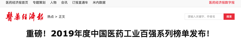 “2019年度中國醫(yī)藥工業(yè)百強(qiáng)系列榜單”盛大發(fā)布